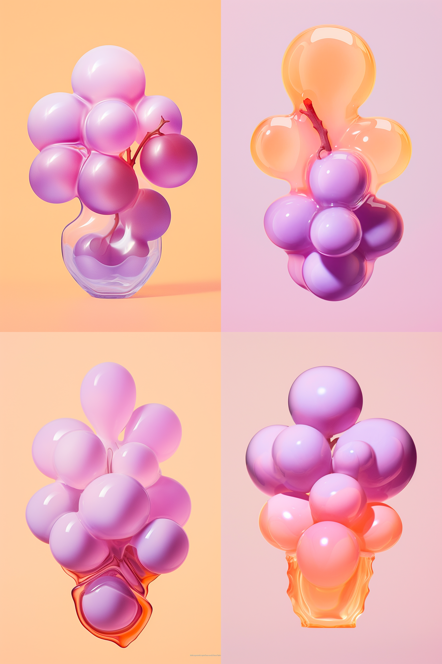 The base image was created with the prompt “grapes in vase on pastel pink background on pastel pink background” I then used original image references to create the variations without changing the text of the prompt. The same reference images are applied to each food in this series.